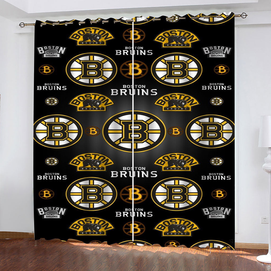 Boston Bruins Hockey League Blackout Curtains Drapes For Window Treatment Set