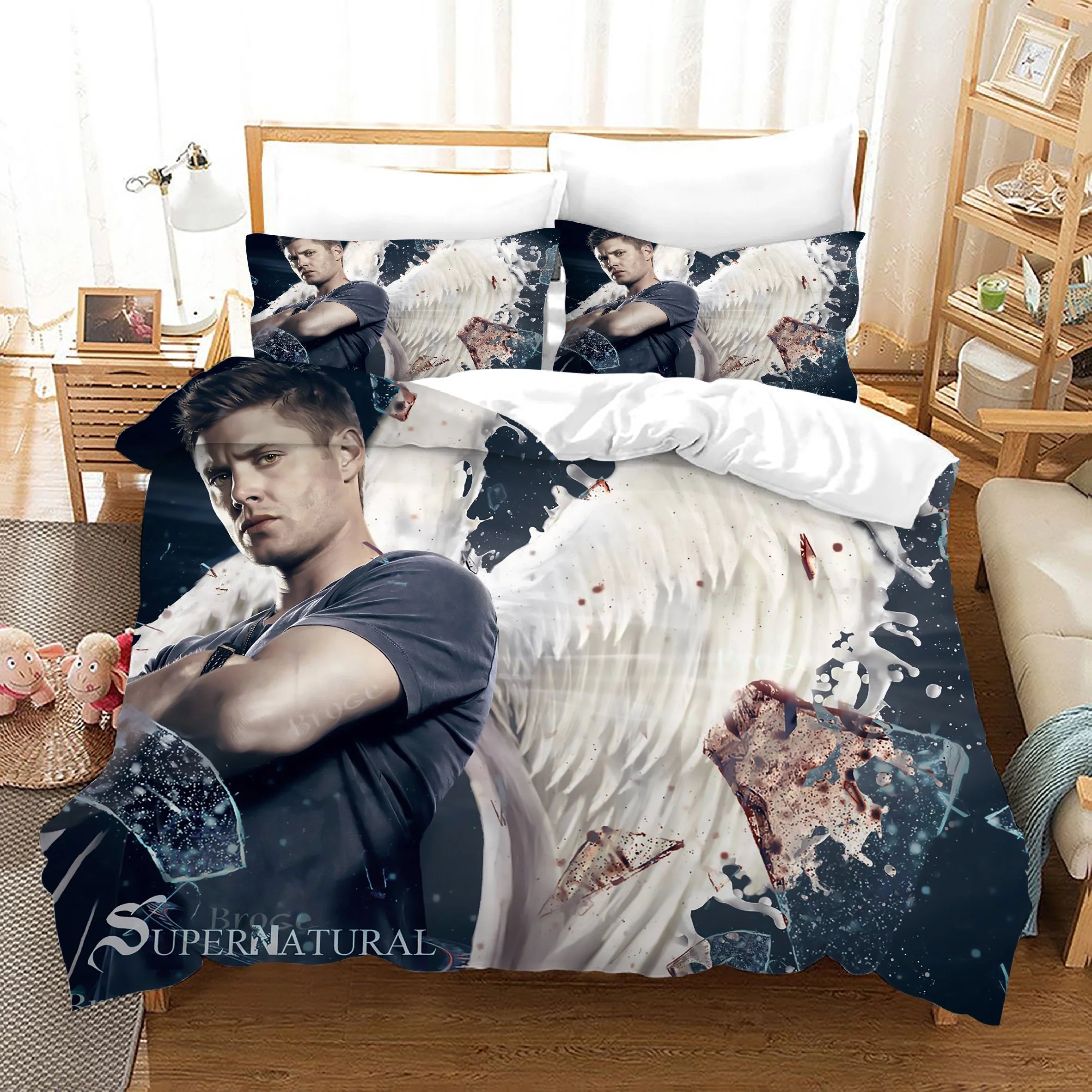 Supernatural Dean Sam Winchester Duvet Cover Quilt Case Pillowcase Bedding Set